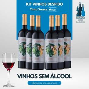 Combo de Vinhos Sem Álcool Despido Tinto Suave - 750mL - Nacional - 06 UN O Combo Vinho Sem Álcool Despido Tinto Suave de 6 garrafas é uma excelente opção para quem deseja apreciar um vinho de alta qualidade sem os efeitos do álcool. Produzido no Rio Grande do Sul, este vinho desalcoolizado mantém todas as características sensoriais de um vinho tradicional, com teor alcoólico inferior a 0,5%. Ideal para harmonizar com pratos leves ou para ser apreciado sozinho, o Despido Tinto Suave oferece uma experiência gastronômica única e saudável. Ficha Técnica: Tipo: Vinho Tinto Sem Álcool Marca: Despido Volume: 750mL Origem: Nacional Teor Alcoólico: Marca: Não Informado Ean: 07890519542879