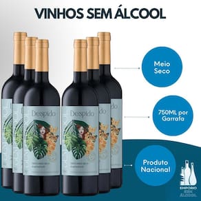 Combo de Vinhos Sem Álcool Tinto Meio Seco Bordô Despido - 750mL - Nacional - 06 UN O Combo Vinho Sem Álcool Tinto Meio Seco Bordô Despido de 6 garrafas é ideal para quem deseja desfrutar de um bom vinho sem álcool. Produzido no Rio Grande do Sul, este vinho mantém todas as características de um tinto meio seco tradicional, com teor alcoólico inferior a 0,5%. É uma opção saudável e saborosa, perfeita para várias ocasiões. Ficha Técnica: Nome: Vinho Sem Álcool Tinto Meio Seco Bordô Despido Marca: Despido Categoria: Vinhos Tinto sem Álcool Tipo: Meio Seco Volume: 750ml Teor Alcoólico: Marca: Não Informado