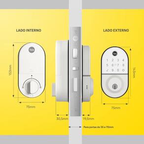 Combo Fechadura Digital Compact Branca Rolete - Yale Está incluso: Fechadura Digital Compact Branca Rolete e Hub A Fechadura Digital Compact da Yale é uma opção moderna e segura para quem busca praticidade e tecnologia. Obs: Somente a lado externo da fechadura (painel com display) pode ficar exposto ao tempo. - Espessura de Porta: 35 a 70mm - Até 250 Senhas - Até 250 Biometrias - Até 250 Tags - Guia de Voz 3 idiomas: Inglês, Espanhol e Português - 4 Pilhas AA alcalinas autonomia de até 3.600 acionamentos - Resistente a intempéries. Somente a lado externo da fechadura (painel com display) pode ficar exposto ao tempo. - Garantia do fabricante: 24 meses - Tipos de abertura: Senha numérica, biometria, cartão, chave de segurança ou App Yale Connect