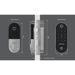 Espessura da Porta: 35 a 70mm Tipos de portas: Madeira e metal Acabamentos: Preto com detalhe cromado Tipos de abertura: Senha numérica, biometria, cartão, chave mecânica e aplicativo. Números de usuários: 250 senhas, 250 biometrias e 250 cartões com 3 cartões inclusos Acionamento de Emergência: USB e chave mecânica Tipos de travamento: Manual Guia de voz: Português, inglês e espanhol Garantia: 2 anos de garantia de fábrica Alarmes: Violação e Intrusão IP: IP55 – lado externo resistente à poeira e chuva Salt Spray: 200 horas Distância do eixo: 45mm Velocidade de abertura da Digital: <0,8s Frequência da Tag: 13,56 Mhz Dimensão da face externa (mm): 165 x 65 x 29 Dimensão da face interna (mm): 165 x 65 x 29 Dimensões da Caixa (mm): 271 x 240 x 120 Peso (g): 2500 Possui Zigbee integrado Material: - Corpo: liga de zinco - Máquina: aço inox 304