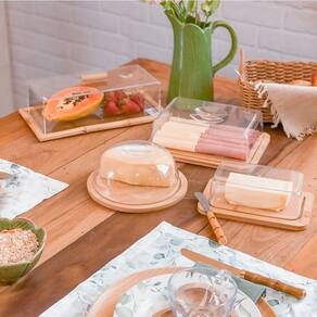 - Composição: 1 Porta Queijo + 1 Porta + 1 Porta Frios Bambu