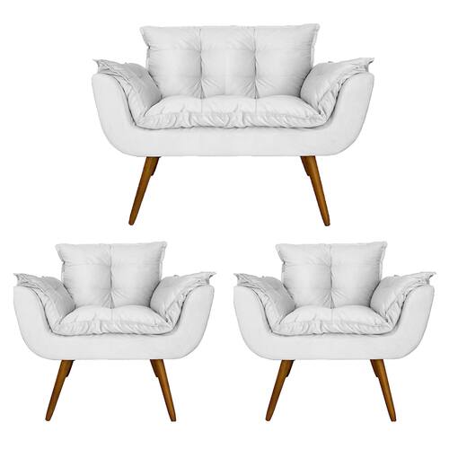 Combo Namoradeira e 2 Poltronas Estofadas Salão de Beleza Opala Corano Branco - LM DECOR