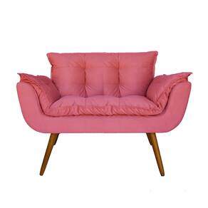Combo Namoradeira e 2 Poltronas Estofadas Salão de Beleza Opala Suede Rosa - LM DECOR