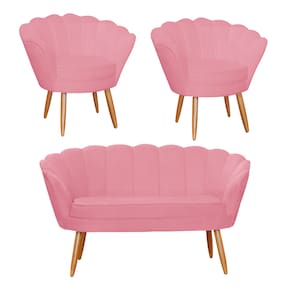 Combo Pétala Namoradeira e 2 Poltronas Decorativa Estofada Suede Rosa Barbie - LM DECOR
