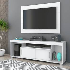 O Combo Pierre combina rack e painel em MDP 15 mm com pintura UV, oferecendo um visual moderno e ótima capacidade para sua sala. Portas deslizantes com puxadores cromados e pés cromados em poliestireno.