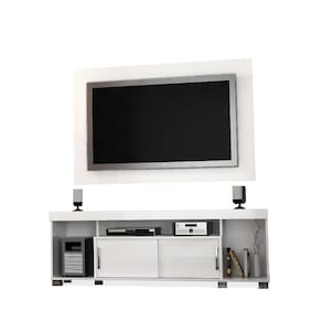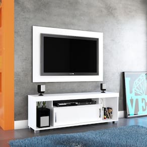 Combo Rack e Painel Pierre com estrutura em MDP 15 mm e pintura UV, oferecendo resistência ao uso diário e acabamento uniforme.