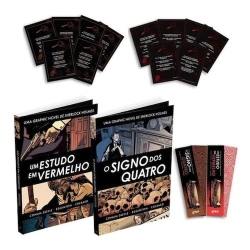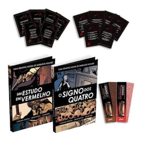Desvende dois dos maiores casos do detetive mais famoso da literatura com essas adaptações inéditas em quadrinhos. Sherlock Holmes: O Signo dos Quatro Quando Miss Mary Mortan chega ao 221B Baker Street, um mistério envolvendo um tesouro escondido, um homem de uma perna só e um desaparecimento inexplicável desafia a genialidade de Sherlock Holmes e seu fiel amigo, Dr. Watson. Sherlock Holmes: Um Estudo em Vermelho Um cadáver encontrado em um quarto ensanguentado, um nome escrito em sangue e um anel de casamento são as peças de um enigma mortal. Neste primeiro caso de Holmes e Watson, a ciência da dedução é colocada à prova em uma investigação que atravessa o oceano.