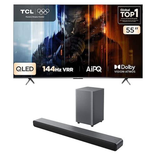 2.1CH e Dolby Atmos: Melhore a experiência sonora da sua televisão com 2 canais de som principais e 1 subwoofer sem fio.