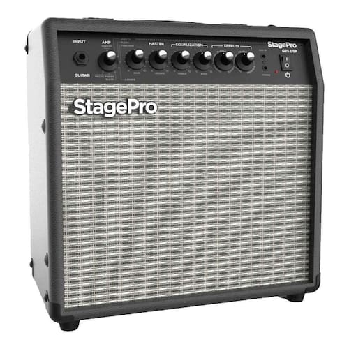 Combo stagepro g25 dsp 25w para guitarra Descrição O combo stagepro g25 dsp é uma excelente opção para guitarristas que buscam versatilidade, qualidade sonora e praticidade em um único equipamento. Com potência de 25w e um alto-falante de 8 polegadas, ele oferece volume ideal para estudos, ensaios e pequenas apresentações, além de garantir um som limpo e encorpado. Um dos grandes destaques desse amplificador são suas 8 simulações de amplificadores clássicos, que permitem ao músico explorar diferentes timbres, desde sons limpos até drives mais pesados, atendendo diversos estilos musicais. Além disso, o stagepro g25 dsp conta com efeitos integrados como chorus, flanger, vibrato, delay, reverb e a combinação delay+reverb, proporcionando ainda mais possibilidades de criação sonora. A interface de gravação integrada permite conectar o amplificador diretamente a dispositivos móveis ou computadores, facilitando a produção de músicas e gravações caseiras com qualidade. Para maior praticidade, oferece entrada p10 para guitarra, entrada auxiliar p2 para playback, saída p2 estéreo para fones de ouvido e controles intuitivos de gain, volume, treble, bass e power, garantindo uma experiência completa tanto para estudo quanto para performances. Especificações técnicas: - potência: 25w - alto-falante: 8 polegadas 20,32 cm - simulações: 8 simulações de amplificadores clássicos - efeitos: chorus, flanger, vibrato, delay, reverb e delay+reverb - interface de gravação: compatível com mobile e computador - entradas: 1 entrada p10 para guitarra e 1 entrada auxiliar p2 - saída: 1 saída p2 estéreo para fones de ouvido - controles: gain, volume, treble, bass e power - bivolt Itens inclusos - 1 amplificador combo stagepro g25 dsp - manual de instruções : 3 meses pelo fabricante Origem: china Imagens meramente ilustrativas.