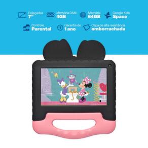 Tablet Multi Minnie 7 pol 4GB RAM 64GB Garantia de diversão e muito carinho com a Minnie! O Tablet Infantil Minnie traz segurança e entretenimento para a criançada.