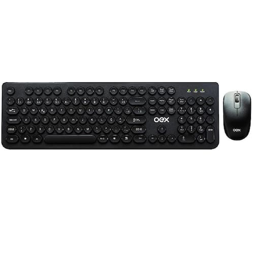 Ótimo custo benefício: combo de mouse e teclado multimídia com fio e conexão USB, oferecendo uma excelente praticidade para utilizar no seu desktop. Especificações Combo teclado e mouse sem fio Teclado: Conexão wireless 2.4ghz Alcance de até 10m Padrão ABNT2 Design slim e elegante Teclas redondas e silenciosas Alimentação: 2 pilhas AAA não inclusas Dimensões: 445 x 140 x 26mm Peso: 450g Mouse: Com nano USB Alcance de até 10m Resolução selecionável de 800 / 1200 / 1600 dpi Alimentação: 2 pilhas AAA não inclusas Dimensões: 106 x 59 x 36mm Peso: 62g Cores: Preto Homologação Anatel: 219272215403 Marca: 0Ex Ean: 7898562619982