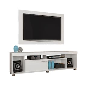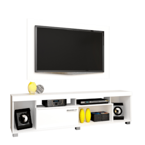 Deixe sua sala de estar muito mais elegante com o Combo Rack e Painel Tomaz Branco, fabricado em MDP de alta qualidade e acabamento em pintura UV, que proporciona durabilidade, resistência e beleza ao móvel.