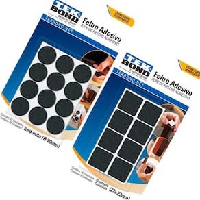 Proteja o seu piso, o pé do seu móvel ou nivele a sua mesa. Versatilidade de uso, são aplicados sob os pés de cadeiras, mesas, camas, estofados e móveis em geral, base de artesanatos, objetos de decoração, luminárias, vasos e cachepôs, estojos, etc. Atrás de quadros, relógios, sofás, móveis, entre outros, protegem pisos, paredes e outras superfícies contra riscos e marcas, atenuam impactos, ruídos e vibrações. Composição: material à base de viscose e poliéster.