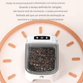 O Comedouro possui um temporizador, após o tempo programado, quando o sensor de presença detectar movimento do pet, a tampa abrirá automaticamente.