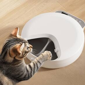 Comedouro Automático Gato Cachorro Programável Ração Pet Cor: Branco Comedouro Automático Gato Cachorro Programável Ração Pet Alimentador Automático Inteligente - Comedouro Programável para Pets Refeições frescas e na hora certa, mesmo quando você não está em casa O Alimentador Automático Inteligente é perfeito para garantir uma alimentação balanceada, higiênica e sem para seu pet. Com ele, você programa até 4 refeições diárias, com porções de 100 a 120g, ajustando exatamente os horários que seu bichinho deve comer. Perfeito para gatos e cães de pequeno porte, esse comedouro possui tampa com trava de segurança, pés antiderrapantes e display inteligente, que permite programar os horários de forma prática e segura. Principais Benefícios: Programa até 4 refeições diárias com porções de 100-120g Tampa com trava - à prova de patinhas curiosas Display inteligente com bloqueio automático - evita alterações acidentais Perfeito para gatos e cães de pequeno porte Compatível com lava-louças - fácil de limpar e higienizar Pés antiderrapantes - mantém o alimentador firme no lugar Funciona com 4 pilhas AA não inclusas e alerta quando estiverem fracas Material atóxico, seguro e resistente Dimensões Aproximadas: Altura: 7 cm Largura: 26 cm Comprimento: 29 cm Conteúdo da Embalagem: 1 Alimentador Automático Inteligente para Pets Seu pet bem alimentado, com mais saúde, qualidade de vida e você com mais praticidade na sua rotina