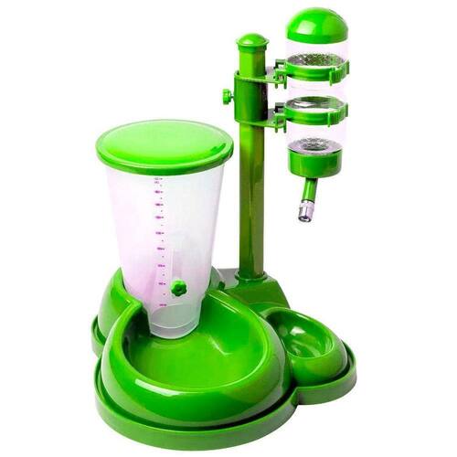 Cor: Verde - Bebedouro automático com regulagem de altura e de posição (pode girá-lo na haste para qualquer lado) - Comedouro automático: conforme o cão come, a ração que estiver armazenada no compartimento irá descer. A reposição é feia pela parte superior do pote. - Base com borrachas antideslizantes - Contém 3 bilhas na ponta do bebedouro Material: Plástico MEDIDAS E CAPACIDADE Capacidade Aproximada do Comedouro: 1,250kg Dimensões do Comedouro:23cm altura x16cm diâmetro Capacidade Bebedouro = 500ml Dimensões do Bebedouro = 22cm altura x 8cm diâmetro Altura total da haste = 29cm Altura máxima do bico do chão = 20 cm Altura mínima do bico do chão = 3 cm Tamanho da embalagem: 30x19x33cm Peso Total: 1,005kg Código do produto: GT651-GN Imagens ilustrativas. As tonalidades podem variar.