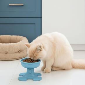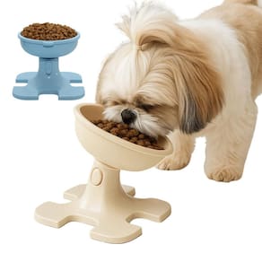 1 Comedouro Elevado Ajustável para Pets - Cor Bege ou Azul