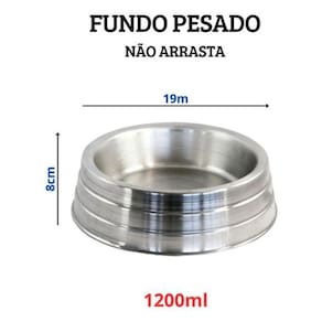 O comedouro enferruja Não ele é antioxidante, de modo a não prejudicar a alimentação do seu cão. No entanto, a longo prazo, conforme o desgate do material, recomendamos a reposição do produto por um novo. Posso colocar água no comedouro Sim o comedouro pesado polido de alumínio serve tanto para colocar rações quanto água. Posso usar para gatos Sim nada impede que o seu uso seja destinado para gatos também e animais porte médio Medidas aproximadas: Tamanho: m Peso: 2,470gr Altura: 8cm Largura: 19cm Profundidade: 6cm Comprimento: 19cm Capacidade: 1200ml O seu cão empurra o comedouro de um lado para o outro toda vez que se alimenta Acabe com este problema de forma simples Independente da raça e do porte, a hora de se alimentar é a favorita para todos os cães muitas vezes eles são tão enérgicos e alegres que acabam empurrando comedouros leves para todos os lados, ás vezes até virando o comedouro de ponta cabeça e esparramando a ração por todo o chão... É uma situação desconfortável tanto para o cão quanto para o dono a , não é mesmo O comedouro pesado polido de alumínio é a solução mais simples e utilizada por donos a de cães para acabar com este problema por ser de metal, o seu peso proporciona uma capacidade de fixação e antideslizante muito maior que comedouros tradicionais de plásticos Tudo isso para melhorar a alimentação do seu pet Benefícios do comedouro pesado polido de alumínio: Antiengasgo altura apropriada para o seu pet Antideslizante. Resistente. Maior durabilidade que comedouros de plástico. Antioxidante. Mais confortável para alimentação de cães independente do porte. Fácil de limpar. Utilizável tanto para rações quanto água.