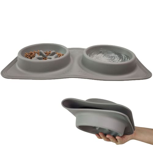 Alimentação e hidratação no mesmo acessório: Um pote ideal para ração, com design anatômico e relevos anti-engasgo, que controlam a velocidade da alimentação, prevenindo refluxo, vômitos e engasgos. O outro, perfeito para manter a água sempre disponível e fresca.