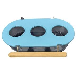 Comedouro com Poleiro 3 Furos Azul