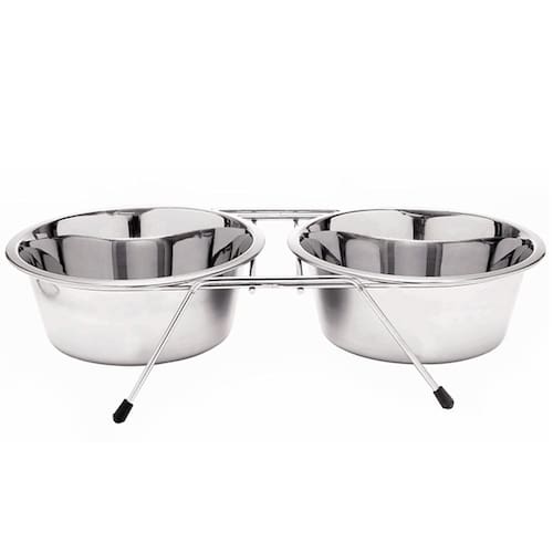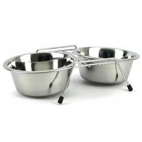 O Comedouro Duplo Inox é a opção ideal para deixar a hora da refeição ainda mais prática. Com um suporte em arame, os potes ficarão longe do chão, proporcionando higiene e conforto ao seu bichinho. As tigelas são removíveis, o que facilita a higienização. - Indicado para cães e gatos;- Base elevada para evitar formigas;- Auxilia na postura correta;- Fabricado em inox;- Antiderrapante;- Leve e fácil de transportar;- Design simples e prático;- Pode colocar ração e/ou água;- Em embalagem com 1 suporte e 2 bowls em Inox. 800 mlAltura: 7,5 cm / Largura: 34 cm / Comprimento: 15,5 cm