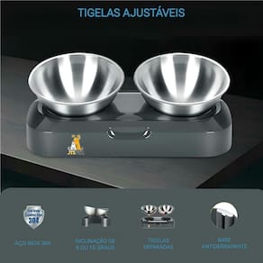 Benefícios: - proteção e conforto: tigelas altas com suportes ajudam a reduzir o desconforto dos animais de estimação. - versatilidade: ideal para oferecer ração, água ou petiscos ao seu pet. - higiene e durabilidade: o aço inoxidável não libera substâncias tóxicas e é resistente a arranhões.