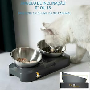 Características do produto: - inclinável de 15: o ângulo de alimentação ajustável 0 ou 15 graus ajuda a reduzir a pressão no pescoço e nas costas do seu pet, ideal para animais com artrite. - tigela de aço inoxidável: feita de material robusto, durável, higiênico e à prova de ferrugem. Pode ser lavada na máquina de lavar louça. - base antiderrapante: mantém a tigela no lugar, evitando derramamentos e desordem. - design removível: fácil de instalar, separar, limpar e ajustar. Disponível em opções simples ou dupla. - adequado para todos os pets: a ampla abertura da tigela evita a fadiga do animal e as bordas arredondadas facilitam o acesso à comida.