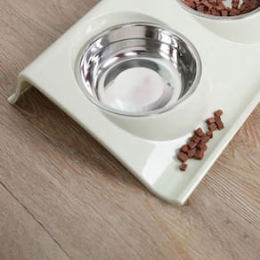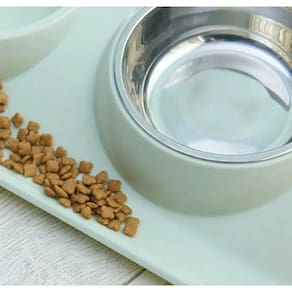As tigelas são removíveis: para que você possa facilmente pegar uma tigela da esteira e enchê-la com comida enquanto a outra tigela ainda está cheia de água e mantida no lugar.