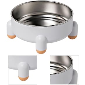 A base do comedouro para animais de estimação foi projetada para ser elevada para facilitar a alimentação do animal, reduzir a pressão nas costas e proteger a coluna cervical do animal.