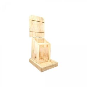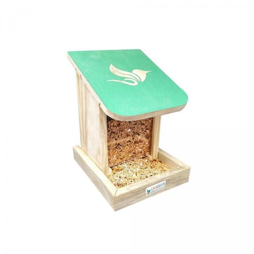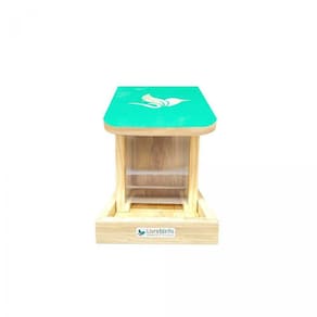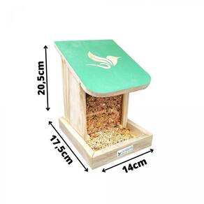 Sua tampa basculante facilita a reposição das sementes; Fabricado a mão; Fabricado com uma madeira muito resistente; Pintura feita a mão; Dimensões: L: 14cm; C: 17,5cm; A: 20,5cm Marca: Livre Birds