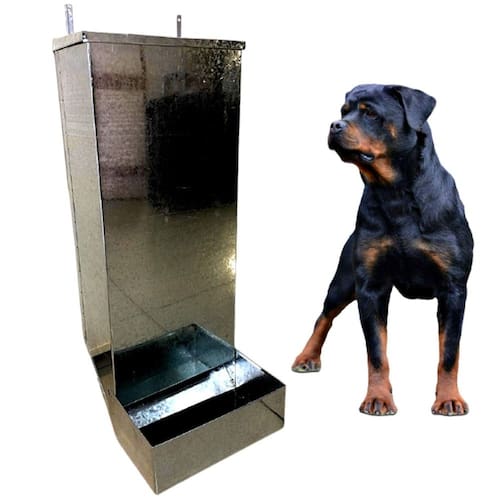 agora você pode colocar de uma vez só toda a ração do seu bichinho de estimação. O comedouro automático gs não enferruja, é fácil de lavar e não contamina a comida do seu mascote. O melhor é que a ração não fica velha, murcha ou estragada. Você coloca a ração 1 vez e o seu cão sempre terá comida fresca. É extremamente resistente, pois é feito em aço galvanizado, projetado para aguentar eventuais choques. Pode ser utilizado para: -alimentar vários cães em canis. -deixar comida suficiente para o cão em caso de alguma viagem -ter um lugar para armazenar a ração