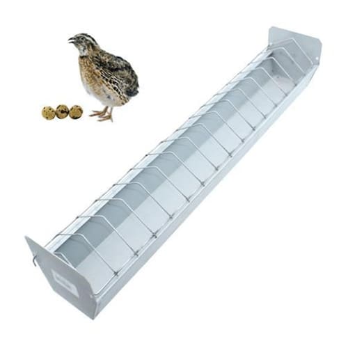 Comedouro Para Codornas Aves Pintinhos 50Cm E Raçao Quirela Ideal para codornas, pintinhos e aves. Comedouro em metal, a parte superior tem uma grade aramada para impedir que a ave entre dentro do comedouro. Incluso: 1 Comedouro 50cm.