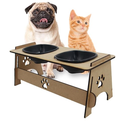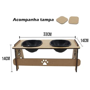 Comedouro pet duplo elevado cães e gatos 2 tigelas para ração água dupétriz Nossos comedouros são desenvolvidos e projetados para ajudar seu pet na hora da alimentação, feito em mdf de ótima qualidade.