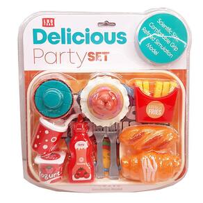Kit para a criançada se divertir com as comidinhas com o kit com torta, frango frito, batata frita e sucos. Comidas realistas com ótima qualidade que irão impressionar toda a criançada. Contém no kit 9 peças de comida e mais os talheres, um pratinho e uma bandeja.