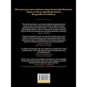 Uma master class sobre investimentos em conversas com os maiores nomes do mundo das finanças, pelo lendário cofundador do Carlyle Group Depois de três décadas no topo de uma das áreas mais competitivas do mercado financeiro, David M. Rubenstein vem agora ensinar tudo o que aprendeu de mais valioso a respeito da arte de investir — desde ações e fundos mútuos e imobiliários até venture capital, private equity, criptomoedas e muito mais. Considerado um dos mais importantes investidores e filantropos da atualidade, em Como investir o autor reúne as melhores entrevistas realizadas em seu programa de TV — Ray Dalio, Larry Fink, Mike Novogratz e Mary Callahan Erdoes, entre outros —, consolidando os princípios, experiências e estratégias que foram indispensáveis para os casos de maior sucesso em todo o mundo das finanças. Com acesso sem precedentes a essas lideranças — muitas das quais raramente falam em público —, Rubenstein criou uma obra de peso. Profundos e reveladores, os testemunhos que reuniu são um norte para quem deseja uma prática vencedora em um ambiente altamente dinâmico e desafiador. Seja você um novato ou um veterano, este livro certamente transformará sua forma de investir.