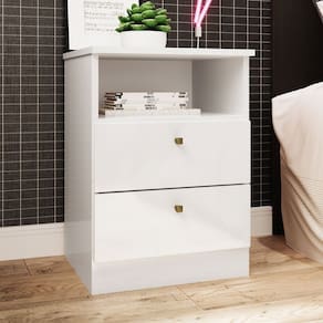O(a) Cômoda 0187 2 Gavetas com Nicho Branco - Genialflex é produzido em MDP na escala de brilho Brilho, e possui um grau de dificuldade de montagem: Médio.
