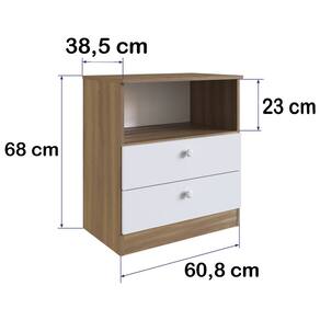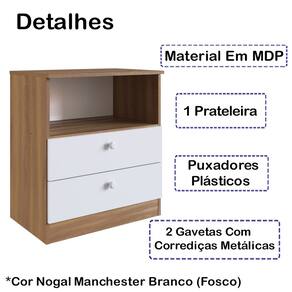 Comoda 02 Gav E Nichos LA005 Comm é versátil, prática e elegante. Estrutura em MDP de 15 mm, e excelente acabamento em Finish Foil (Fosco). Composta por 02 gavetas com corrediças metálicas, 01 prateleira, nicho, puxadores plásticos e acompanha sapatas. Gavetas suportam até 3 kg cada, a prateleira e o nicho suportam 5 kg distribuídos. É ideal para o quarto do seu bebê, facilitando e otimizando o espaço e o aconchego para ao ambiente. Este móvel chegará em sua casa separado em 01 volume.