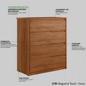 Comoda 04 Gavetas Corrediças Telescopicas Atria, complemento ideal para seu quarto, oferecendo muita beleza e originalidade ao seu ambiente. Estrutura em MDP de 12, 15 e 18 mm, com acabamento em pintura UV. Composta por 04 gavetas com detalhes curvos, que dispensam puxadores e entregam suavidade ao design além de, corrediças telescópicas que garantem conforto ao abrir e fechar as gavetas, ideal para suas roupas, toalhas, lençóis e fronhas. Amplas dimensões e capacidade de armazenamento, desenvolvida para oferecer total conforto e comodidade para você. Este móvel chegará em sua casa separado em 01 volume.