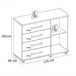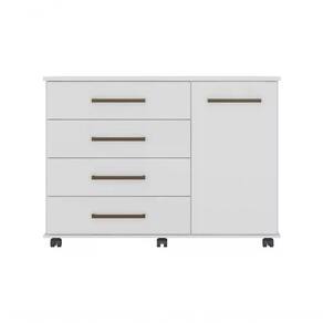 Comoda 04 Gavetas Flora Branco Com Rodizios Demobile Branco Cômoda Flora, ideal para quem busca modernidade e sofisticação ao cômodo. Estrutura 100% em MDP, feita com material ecológicamente correto, para melhor durabilidade e resistência à peça, contando com pintura em acabamento UV. Composta por 04 gavetas externas com corrediças telescópicas, 01 porta de bater com dobradiça metálica, prateleira interna, 06 rodizios que facilitam a movimentação do móvel para limpeza, e puxadores. Este móvel chegará em sua casa separado em 01 volume. Dimensões Altura 101 cm Largura 125 cm Profundidade 45 cm
