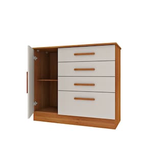 A Cômoda Chicago é um produto fabricado com material MDP, conta com 4 gavetas, corrediças telescópicas, sapateira lateral com prateleira, puxadores em PVC, modelo perfil H, excelente acabamento em filete e pintura UV. Acabamento da Gaveta: Pintura Acabamento da Porta: Pintura Acabamento da Prateleira: Pintura Ambiente Principal: Quarto Complexidade da Montagem: Baixa: pode ser montado por uma pessoa sozinha Cor: Cinamomo/Off White Cor do Produto: Cinamomo/Off White Escala de Brilho: Brilhante Escala de Brilho da Gaveta: Semi-Brilho Escala de Brilho da Porta: Semi-Brilho Escala de Brilho da Prateleira: Semi-Brilho Gaveta com Chave: Não Informações Complementares: Gaveta com chave possui divisórias de gaveta biju para jóias. Itens Inclusos: 1 Cômoda, Manual de Montagem e Kit Ferragens Linha ou Coleção: Chicago Manual de Montagem e Instalação: https://product-hub-prd.madeiramadeira.com.br/823374/documents/e5a1be31-750d-4493-ae3b-f9f80546c8dfdemontagemcmoda4gavchicago.pdf Material da Gaveta: MDP Material da Porta: MDP Material da Prateleira: MDP Material do Fundo: MDP Material do Puxador da Gaveta: PVC Material do Puxador da Porta: PVC Material Principal: MDP Necessita Montagem: Sim Origem do Produto: Nacional Peso: 34.56 Peso Máximo por Gaveta: 5 Peso Máximo por Prateleira: 5 Possui Espelho: Não Possui Nichos: Não Possui Pés: Não Possui Portas: Sim Possui Prateleiras: Sim Quantidade de Gavetas: 04 Gavetas Quantidade de Prateleiras: 01 Prateleira Recomendações de Uso, Manutenção e Limpeza: Não colocar o produto em lugar úmido, não arrastar, limpar somente com pano macio e seco, não expor o produto a incidência de luz solar, não colocar peso superior ao iicado. Sapatas Niveladoras: Não Sistema de Montagem: Parafusos, cavilhas e pregos. Suporta Até (kg): 30 Tipo de Corrediça da Gaveta: Metálica Telescópica Tipo de Dobradiça/Corrediça da Porta: Metálica Tipo de Porta: Bater Tipo de Puxador da Gaveta: Externo Tipo de Puxador da Porta: Externo Ean: 7909903390269