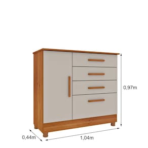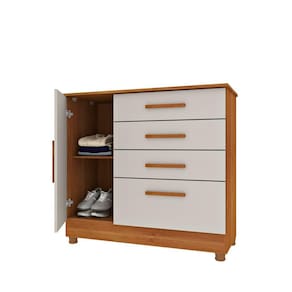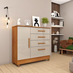 Com a Cômoda Chicago seu quarto estará completo e seus pertences bem organizados. Produzida inteiramente em MDP, possui 4 gavetas com corrediças metálicas e uma porta, tampo de 25mm e espaço sapateira. Acabamento resistente com impressão UV e verniz de alta duração. Acabamento da Gaveta: Pintura Acabamento da Porta: Pintura Acabamento da Prateleira: Pintura Acabamento dos Pés: Pintura Altura dos Pés: 6 Ambiente Principal: Quarto Complexidade da Montagem: Baixa: pode ser montado por uma pessoa sozinha Cor: Cinamomo/Off White Cor do Produto: Cinamomo/Off White Escala de Brilho: Brilhante Escala de Brilho da Gaveta: Semi-Brilho Escala de Brilho da Porta: Semi-Brilho Escala de Brilho da Prateleira: Semi-Brilho Gaveta com Chave: Não Itens Inclusos: 1 Cômoda, Manual de Montagem e Kit Ferragens Linha ou Coleção: Chicago Manual de Montagem e Instalação: https://product-hub-prd.madeiramadeira.com.br/823377/documents/a16764a6-bfc0-4693-8767-d9d95c49dd44demontagemcmoda4gavchicago.pdf Material da Gaveta: MDP Material da Porta: MDP Material da Prateleira: MDP Material do Fundo: MDP Material do Puxador da Gaveta: PVC Material do Puxador da Porta: PVC Material dos Pés: MDP Material Principal: MDP Necessita Montagem: Sim Origem do Produto: Nacional Pés Reguláveis: Não Peso: 34.56 Peso Máximo por Gaveta: 5 Peso Máximo por Prateleira: 5 Possui Espelho: Não Possui Nichos: Não Possui Pés: 04 Possui Portas: Sim Possui Prateleiras: Sim Possui Rodízio: Não Quantidade de Gavetas: 04 Gavetas Quantidade de Prateleiras: 01 Prateleira Recomendações de Uso, Manutenção e Limpeza: Não colocar o produto em lugar úmido, não arrastar, limpar somente com pano macio e seco, não expor o produto a incidência de luz solar, não colocar peso superior ao iicado. Sapatas Niveladoras: Não Sistema de Montagem: Parafusos, cavilhas e pregos. Suporta Até (kg): 30 Tipo de Corrediça da Gaveta: Metálica Telescópica Tipo de Dobradiça/Corrediça da Porta: Metálica Tipo de Porta: Bater Tipo de Puxador da Gaveta: Externo Tipo de Puxador da Porta: Externo Ean: 7909903390276