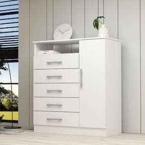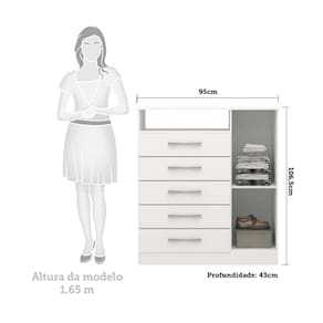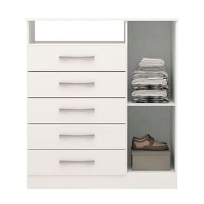 Para você que está buscando um móvel com amplo espaço interno e maior durabilidade, a Cômoda Nemésia é perfeita. Com estrutura em 100% MDF, 1 Porta e 5 gavetas, ela oferece muito espaço para organizar roupas, sapatos ou outros objetos. Muito versátil, ela pode ser usada também em outros cômodos além do quarto. Suas gavetas possuem corrediças telescópicas, proporcionando deslize suave e silencioso. Aproveite esse oportunidade e adquira agora a sua. Produto Montado: Sim Acabamento da Gaveta: Pintura UV Acabamento da Porta: Pintura UV Acabamento dos Pés: Pintura Altura dos Pés: 9 cm Altura Máxima dos Pés: 9.0000 Ambiente Principal: Quarto codigo_ean: 7908308783782 Complexidade da Montagem: Média: pode ser montado por mais de uma pessoa e/ou necessite de maior conhecimento para montagem Cor: Branco Cor do Produto: Branco Cor Interna: Linho Escala de Brilho: Brilhante Escala de Brilho da Gaveta: Brilhante Escala de Brilho da Porta: Brilhante Gaveta com Chave: Não Informações Complementares: Estrutura em MDF 12mm, frente de gaveta, porta e tampo em MDF 15mm e fundo HDF 2,5mm. Peso máximo suportado de 60kg devem ser distribuídos de forma adequada e equilibrada. Itens Inclusos: 1 Cômoda, Kit Ferragens e Manual de Montagem Linha ou Coleção: Nemésia Manual de Montagem e Instalação: https://product-hub-prd.madeiramadeira.com.br/825337/documents/8c7b204d-32dd-493d-836c-90ff0a7c55b61169394comodamadri.pdf Material da Gaveta: MDF Material da Porta: MDF Material do Fundo: HDF Material do Puxador da Gaveta: Plástico Material do Puxador da Porta: Plástico Material dos Pés: MDF Material Principal: MDF Necessita Montagem: Sim Origem do Produto: Nacional Pés Reguláveis: Não Peso: 41,5 kg Peso Máximo por Gaveta: 10 kg Possui Espelho: Não Possui Nichos: 01 Possui Pés: Rodapé Possui Portas: Sim Possui Prateleiras: Não Possui Rodízio: Não Quantidade de Gavetas: 05 Gavetas Recomendações de Uso, Manutenção e Limpeza: Para limpar não use nenhum tipo de produto, tais como sabão, esponja de aço, álcool e lustra-móveis. Use somente uma flanela seca. Não molhe nem exponha o móvel à umidade ou a luz solar diretamente ou outra forma de calor. Não encoste o móvel na parede. Não o arreste. Se precisar mudar o móvel de lugar, esvazie por completo o móvel, não o arraste, com ajuda de outras pessoas suspenda o móvel de forma segura e o posicione no lugar desejado. Sapatas Niveladoras: Sim Sistema de Montagem: Parafusos, Minifix e Cavilhas. Suporta Até (kg): 60 kg Tipo de Corrediça da Gaveta: Metálica Telescópica Tipo de Dobradiça/Corrediça da Porta: Metálica Tipo de Porta: Bater Tipo de Puxador da Gaveta: Externo Tipo de Puxador da Porta: Externo Ean: 7908308783782