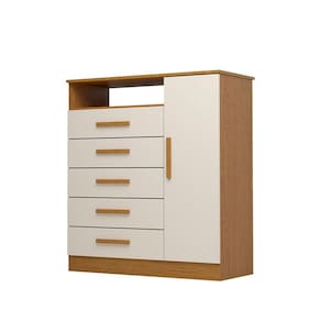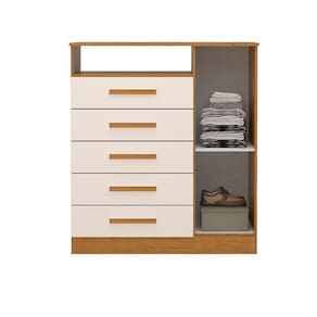 Para você que está buscando um móvel com amplo espaço interno e maior durabilidade, a Cômoda Nemésia é perfeita. Com estrutura em 100% MDF, 1 Porta e 5 gavetas, ela oferece muito espaço para organizar roupas, sapatos ou outros objetos. Muito versátil, ela pode ser usada também em outros cômodos além do quarto. Suas gavetas possuem corrediças telescópicas, proporcionando deslize suave e silencioso. Aproveite esse oportunidade e adquira agora a sua. Acabamento da Gaveta: Pintura UV Acabamento da Porta: Pintura UV Acabamento dos Pés: Pintura Altura dos Pés: 9 cm Ambiente Principal: Quarto Complexidade da Montagem: Média: pode ser montado por mais de uma pessoa e/ou necessite de maior conhecimento para montagem Cor: Cinamomo/Off White Cor do Produto: Cinamomo/Off White Cor Interna: Linho Escala de Brilho: Semi-Brilho Escala de Brilho da Gaveta: Semi-Brilho Escala de Brilho da Porta: Semi-Brilho Gaveta com Chave: Não Informações Complementares: Estrutura em MDF 12mm, frente de gaveta, porta e tampo em MDF 15mm e fundo HDF 2,5mm. Peso máximo suportado de 60kg devem ser distribuídos de forma adequada e equilibrada. Itens Inclusos: 1 Cômoda, Kit Ferragens e Manual de Montagem Linha ou Coleção: Nemésia Manual de Montagem e Instalação: https://product-hub-prd.madeiramadeira.com.br/825337/documents/82e368f6-54e3-4691-bcb1-f95dbba024175558CmodaMadri1pt5gnovopux.pdf Material da Gaveta: MDF Material da Porta: MDF Material do Fundo: HDF Material do Puxador da Gaveta: Plástico Material do Puxador da Porta: MDF Material dos Pés: MDF Material Principal: MDF Necessita Montagem: Sim Origem do Produto: Nacional Pés Reguláveis: Não Peso: 41,5 kg Peso Máximo por Gaveta: 10 kg Possui Espelho: Não Possui Nichos: 01 Possui Pés: Rodapé Possui Portas: Sim Possui Prateleiras: Não Possui Rodízio: Não Quantidade de Gavetas: 05 Gavetas Recomendações de Uso, Manutenção e Limpeza: Para limpar não use nenhum tipo de produto, tais como sabão, esponja de aço, álcool e lustra-móveis. Use somente uma flanela seca. Não molhe nem exponha o móvel à umidade ou a luz solar diretamente ou outra forma de calor. Não encoste o móvel na parede. Não o arreste. Se precisar mudar o móvel de lugar, esvazie por completo o móvel, não o arraste, com ajuda de outras pessoas suspenda o móvel de forma segura e o posicione no lugar desejado. Sapatas Niveladoras: Sim Sistema de Montagem: Parafusos, Minifix e Cavilhas. Suporta Até (kg): 60 kg Tipo de Corrediça da Gaveta: Metálica Telescópica Tipo de Dobradiça/Corrediça da Porta: Metálica Tipo de Porta: Bater Tipo de Puxador da Gaveta: Externo Tipo de Puxador da Porta: Externo