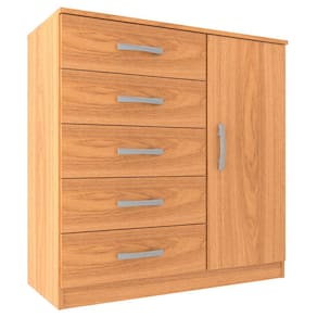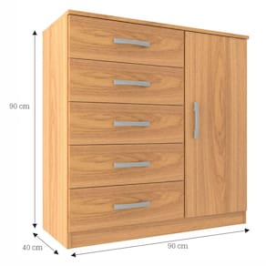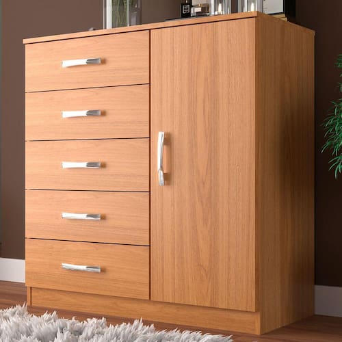 O(a) Cômoda 1 Porta 5 Gavetas Cp154 Cinnamomo - Evidencia Móveis é produzido em MDP na escala de brilho Fosco, e possui um grau de dificuldade de montagem: Médio.