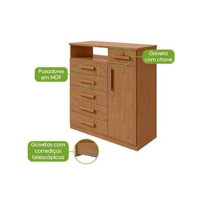 Produto em MDP; Pintura e acabamento em micro textura; Puxadores em MDF; 06 gavetas; Gaveta com chave; Gavetas com corrediças telescópicas; 01 porta com prateleiras internas; Tampo de 25mm; Fundo das gavetas e costas em HDF. Vantagens/Benefícios: Produzido com equipamentos de alta tecnologia; Produto avaliado e aprovado por um rigoroso controle de qualidade; Fácil montagem e manual de montagem simplificado; Design minimalista; Acabamento com toque aveludado; Gavetas ideais para acomodação das roupas em maiores quantidades; Gavetas grandes e espaçosas com corrediças telescópicas; Tampo de 25mm para maior resistência; Porta com puxador para melhor acesso às prateleiras internas; Prateleiras internas para sapatos.