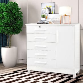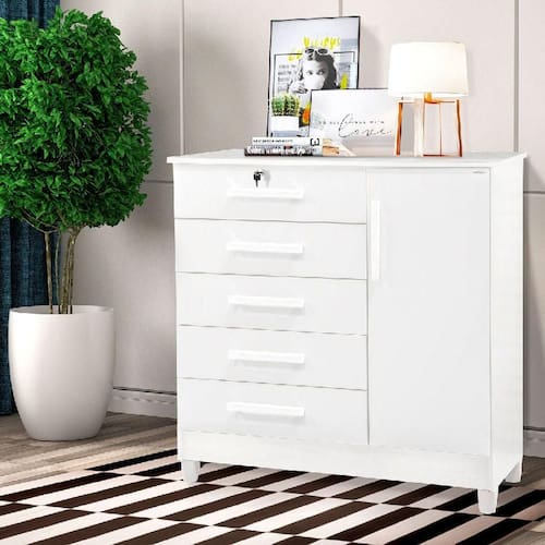 Comoda 1 Porta e 5 Gavetas com Chave Vitoria cor Branco - Rud Rack