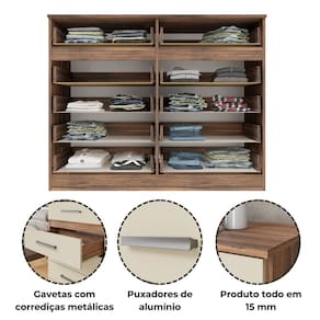 10 Gavetas Espaçosas: Organize seus pertences com praticidade e estilo. As gavetas são perfeitas para roupas, acessórios, documentos e muito mais.