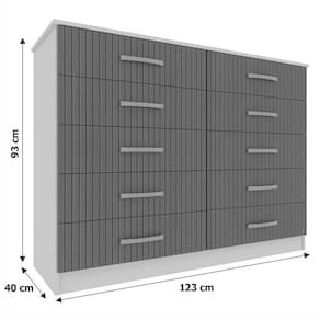 O(a) Cômoda 10 Gavetas Austin Preto - Evidência Móveis é produzido em MDP na escala de brilho Fosco, e possui um grau de dificuldade de montagem: Médio.