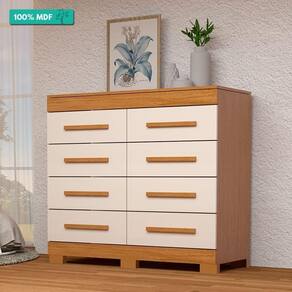 Cômoda 100% Mdf 8 Gavetas Nalu Acp Móveis Cinamomo/Off White
