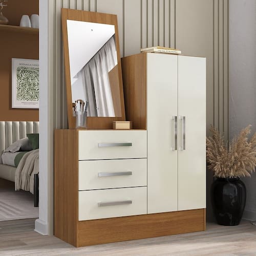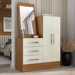 A Cômoda Dunas é uma peça deslumbrante que une funcionalidade e elegância para a organização do seu espaço. Fabricada com MDP de 12mm e fundo em MDF de 3mm, oferece durabilidade e estabilidade excepcionais. Com corrediças plásticas suaves, puxadores cromados e pintura UV fosca, esta cômoda apresenta um design moderno. Além disso, inclui um espelho elegante para adicionar um toque extra de sofisticação. Acompanhada de manual de montagem, é fácil de montar e vem embalada com plástico termoencolhível e papelão resistente. Com uma distribuição interna inteligente, oferece amplo espaço para organização. A Cômoda Dunas é a escolha perfeita para quem busca qualidade, funcionalidade e estilo em um único móvel. Acabamento da Gaveta: Pintura UV Acabamento da Porta: Pintura UV Acabamento da Prateleira: Pintura UV Altura do Espelho: 60 Ambiente Principal: Quarto Complexidade da Montagem: Baixa: pode ser montado por uma pessoa sozinha Cor: Cinamomo/Off White Cor do Produto: Cinamomo/Off White Escala de Brilho: Fosco Escala de Brilho da Porta: Fosco Escala de Brilho da Prateleira: Fosco Espessura do Espelho: 3 Formato do Espelho: Retangular Gaveta com Chave: Não Itens Inclusos: 1 Cômoda, Espelho, Kit Ferragens e manual de montagem Largura do Espelho: 33 Manual de Montagem e Instalação: https://product-hub-prd.madeiramadeira.com.br/905841/documents/a23566f9-f0eb-44d1-9c1b-44327f30b5891934973234117151995100116.pdf Material da Gaveta: MDP Material da Porta: MDP Material da Prateleira: MDP Material do Fundo: MDF Material Principal: MDP Necessita Montagem: Sim Origem do Produto: Nacional Peso: 30.25 Peso Máximo por Gaveta: 5 Peso Máximo por Prateleira: 7 Possui Espelho: Sim Possui Nichos: Não Possui Pés: Não Possui Portas: Sim Possui Prateleiras: Sim Quantidade de Espelho: 01 Recomendações de Uso, Manutenção e Limpeza: pano levemente úmido Sapatas Niveladoras: Não Sistema de Montagem: parafusos, cavilhas e cantoneiras Suporta Até (kg): 20 Tipo de Corrediça da Gaveta: Plástica Tipo de Dobradiça/Corrediça da Porta: Metálica Tipo de Fixação do Espelho: Parafusos Tipo de Porta: Bater Tipo de Puxador da Gaveta: Externo Tipo de Puxador da Porta: Externo